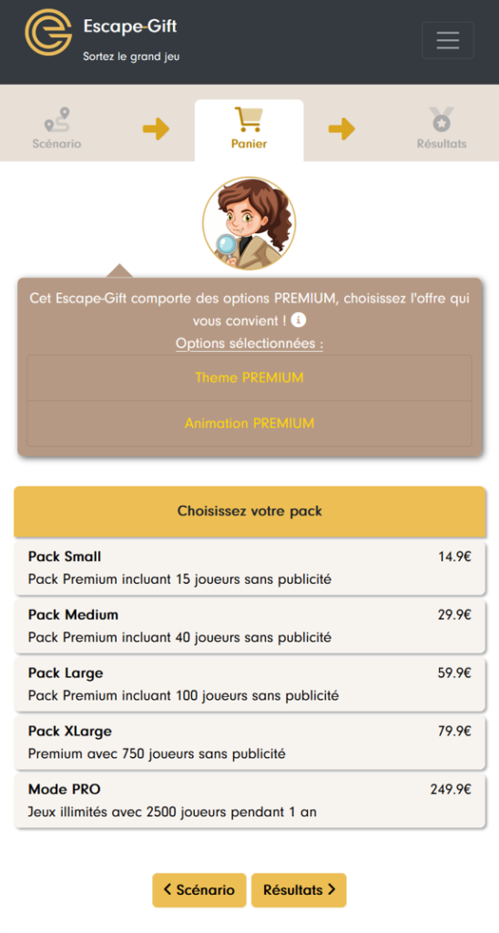 Et pourquoi parle-t-on de ça maintenant ? Parce que si vous avez un panier à régler, ça doit être fait maintenant, juste avant l’étape « Lancement » qui permet de partager votre Escape-Gift !
