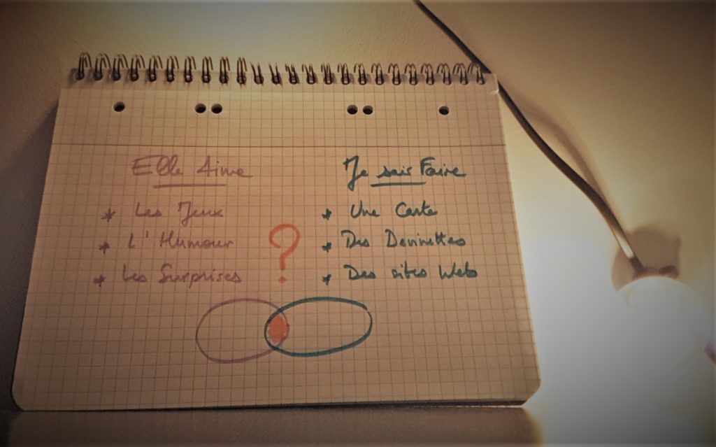 Alors j’ai réfléchi à ce qu’elle aimait et à ce que je savais faire et l’idée de lui designer une page internet dédiée pour l’occasion m’est venue. Quel intérêt me direz-vous ? ça permettait de lui faire deviner une succession de petit cadeaux cachés par des énigmes marantes et personnalisées.